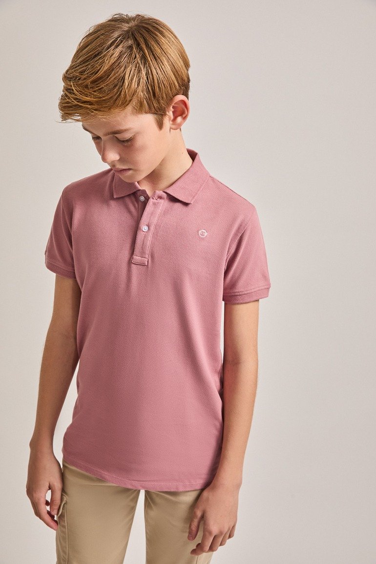 Polo de manga corta disponible en varios colores, con detalle en el cuello y botones en la parte frontal de la prenda.